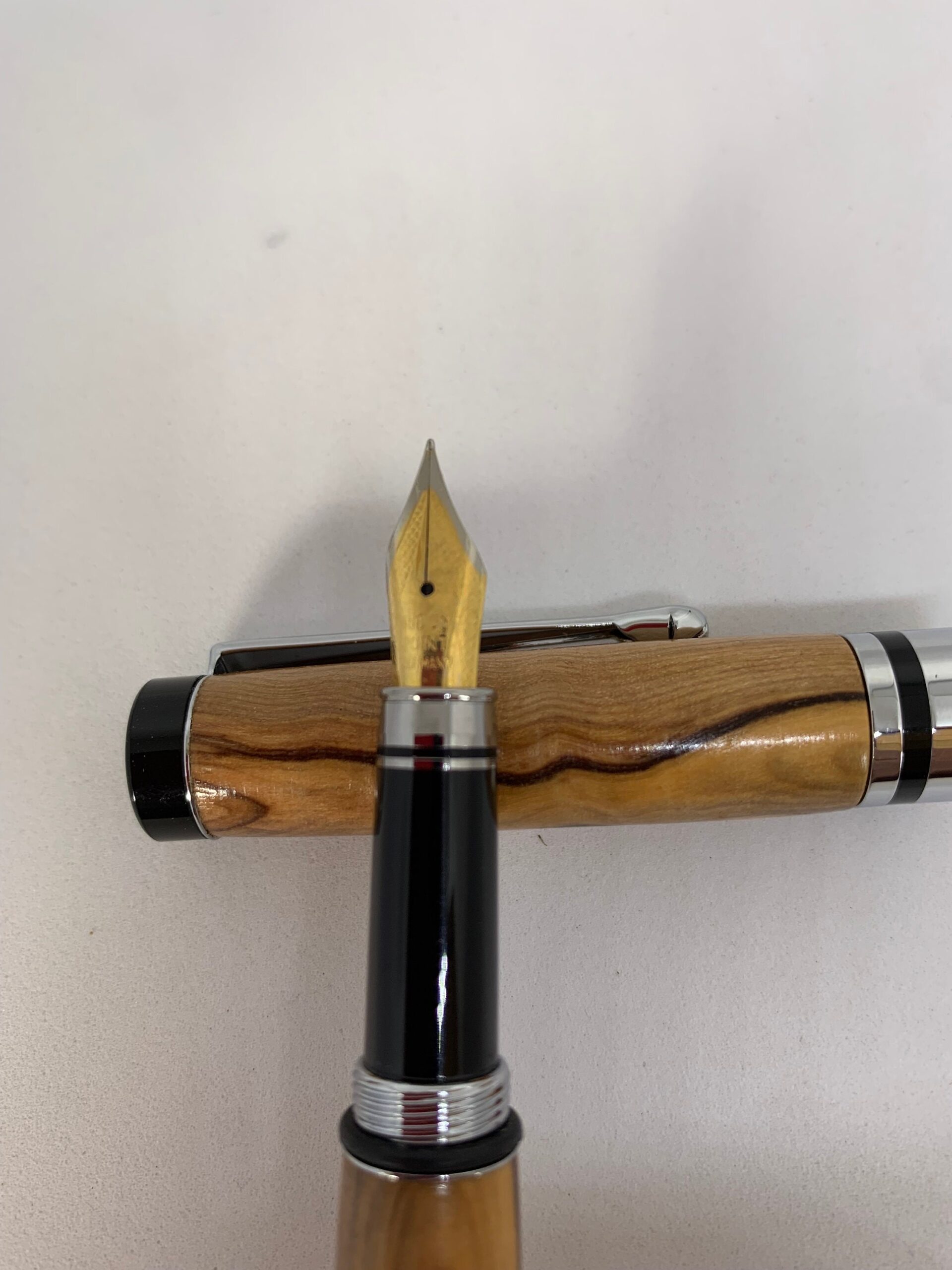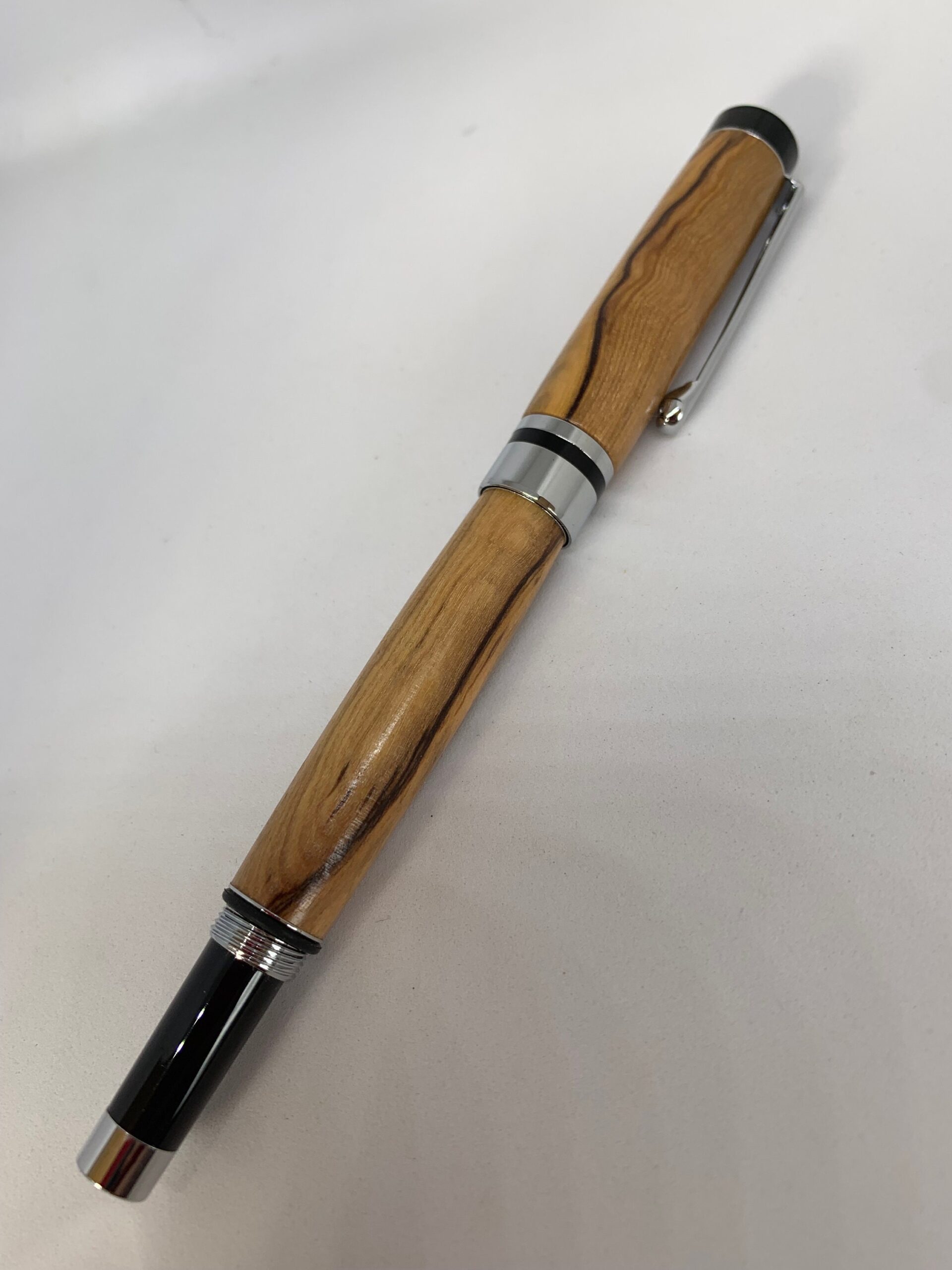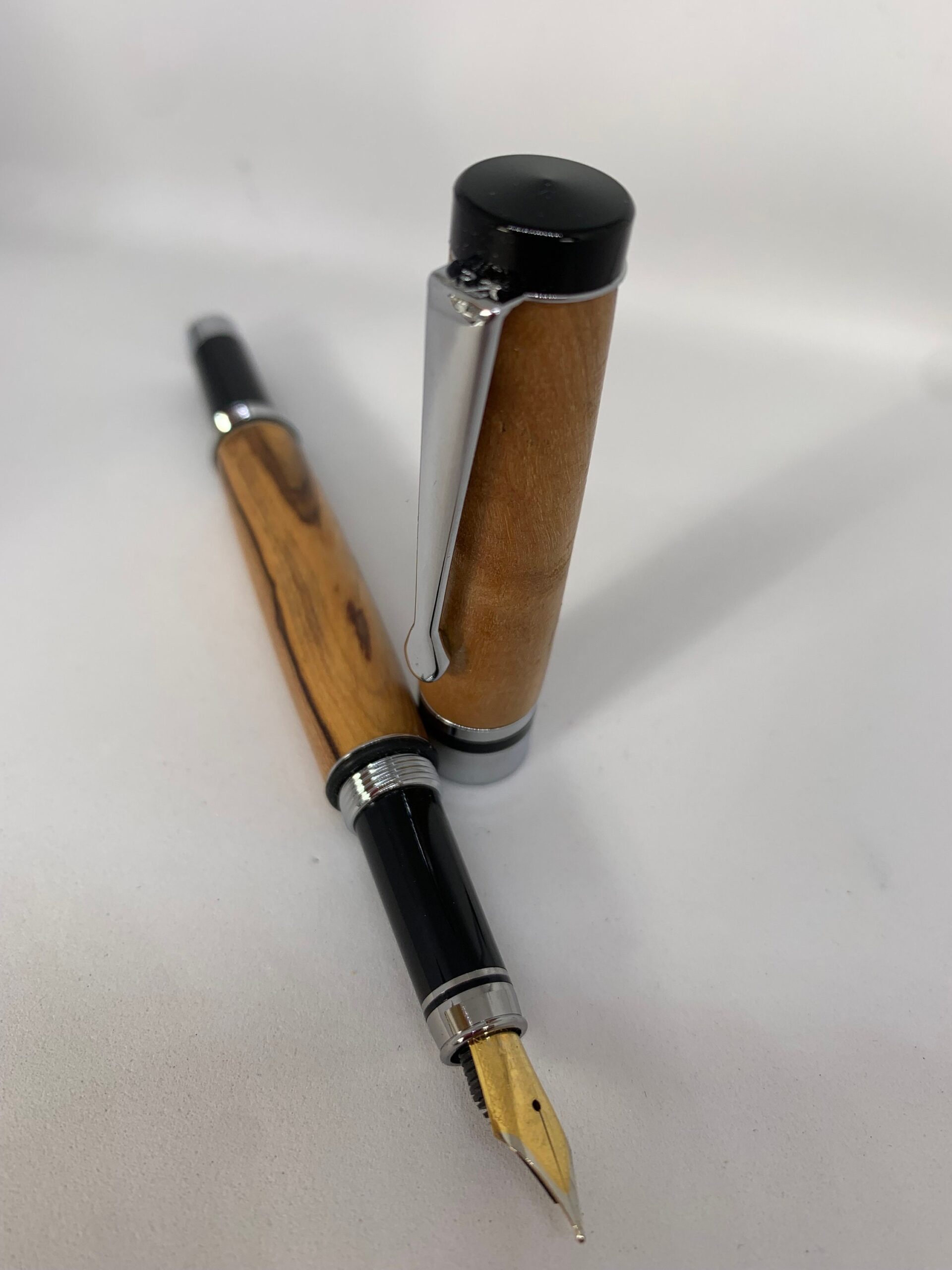 Pen is completed with black and chrome finish which accentuates the markings of the olive wood very nicely.
