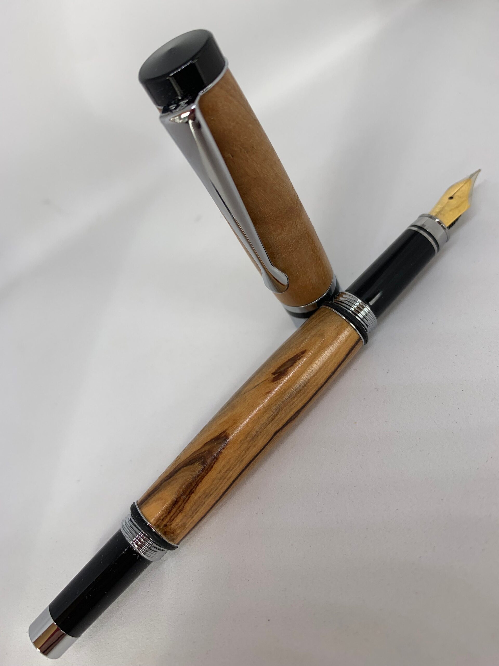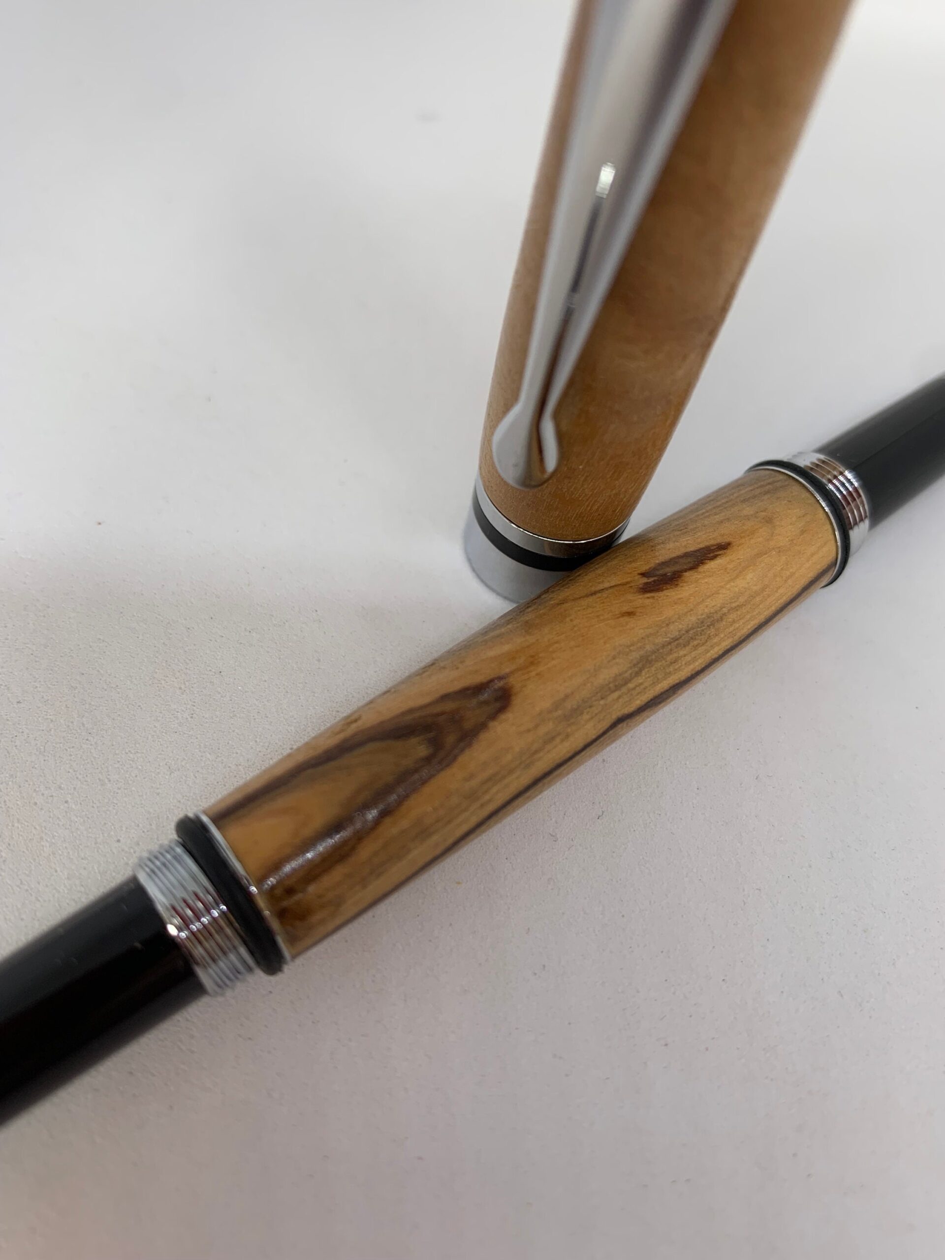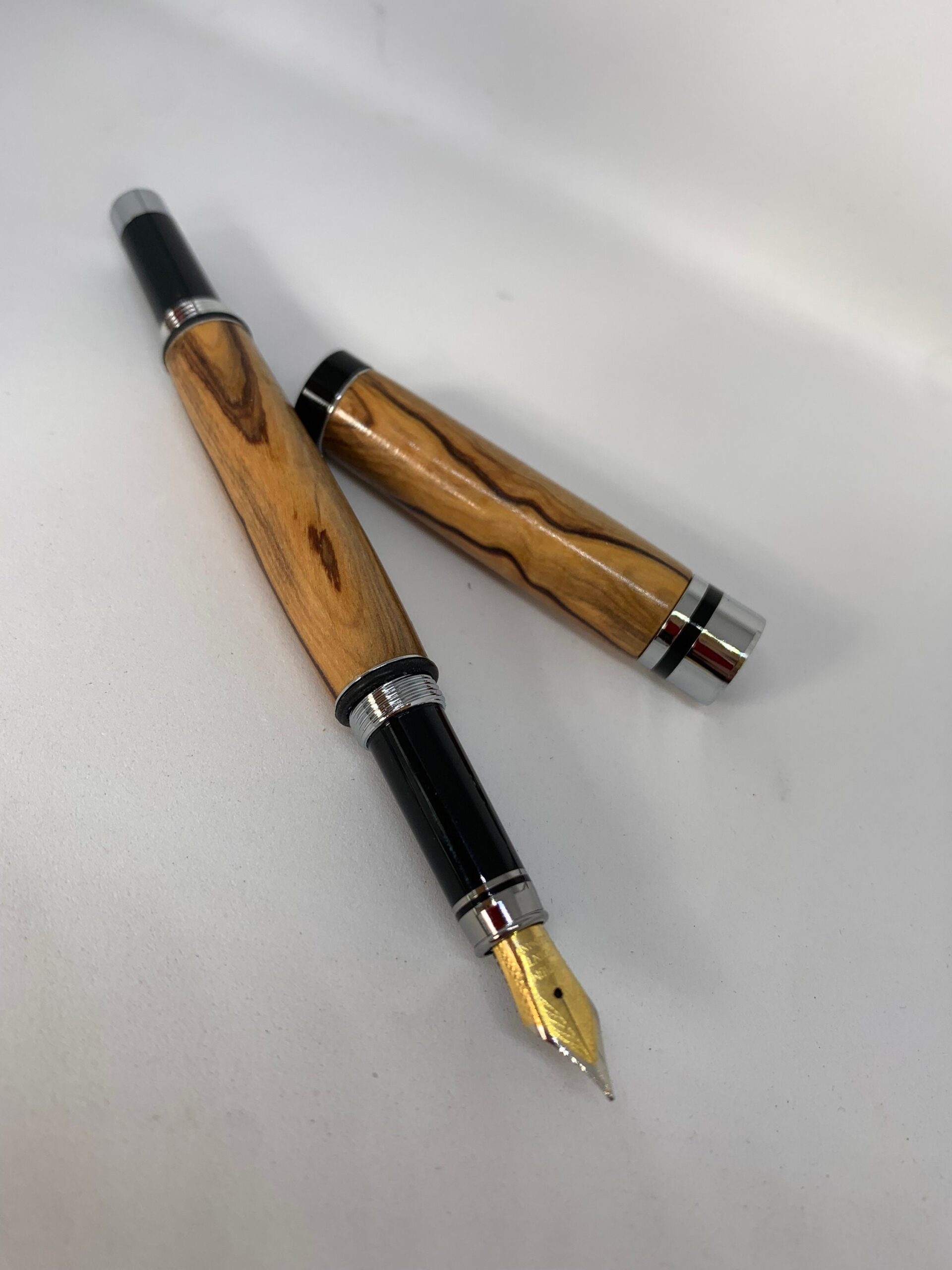 Pen is completed with black and chrome finish which accentuates the markings of the olive wood very nicely.