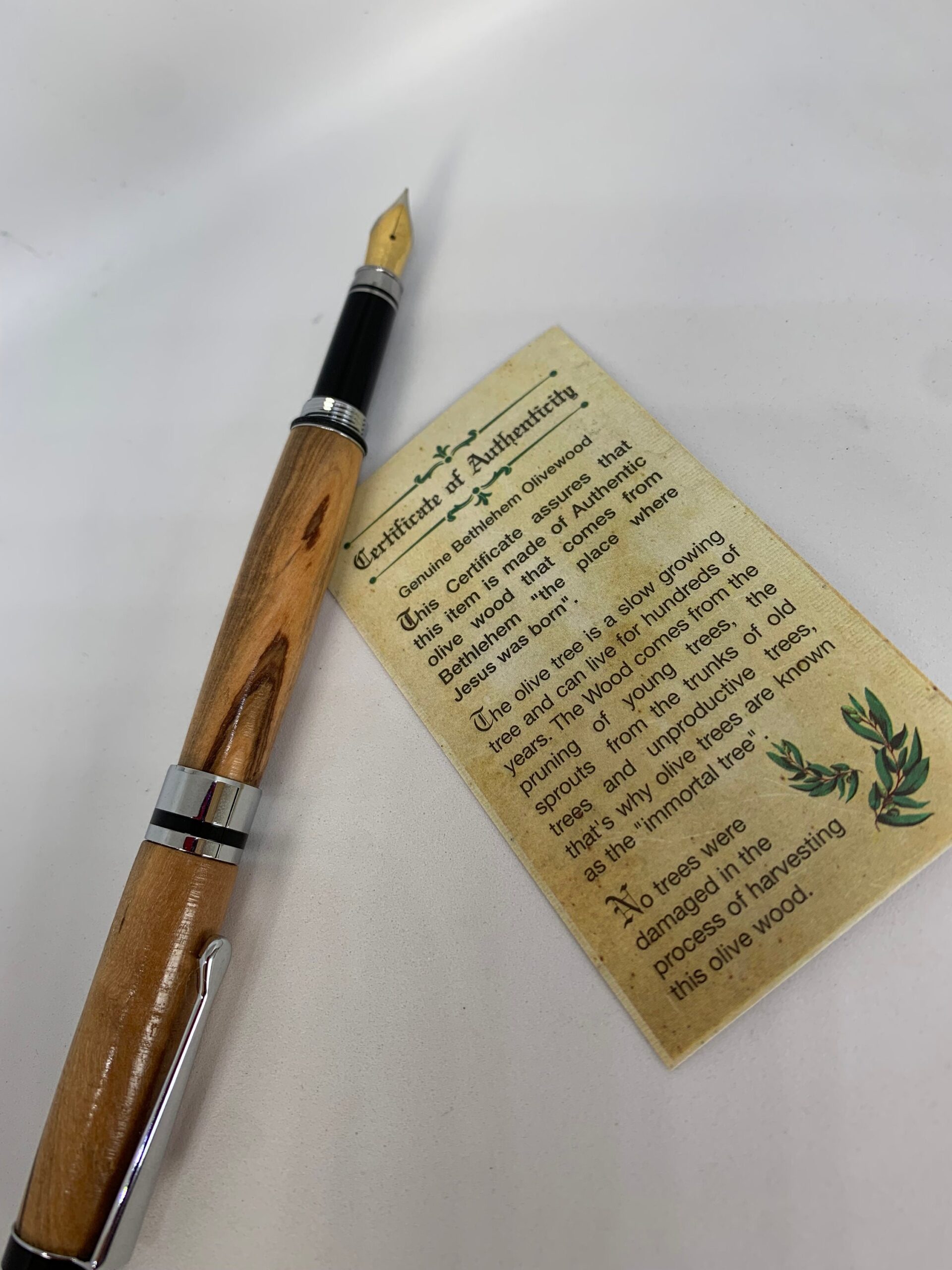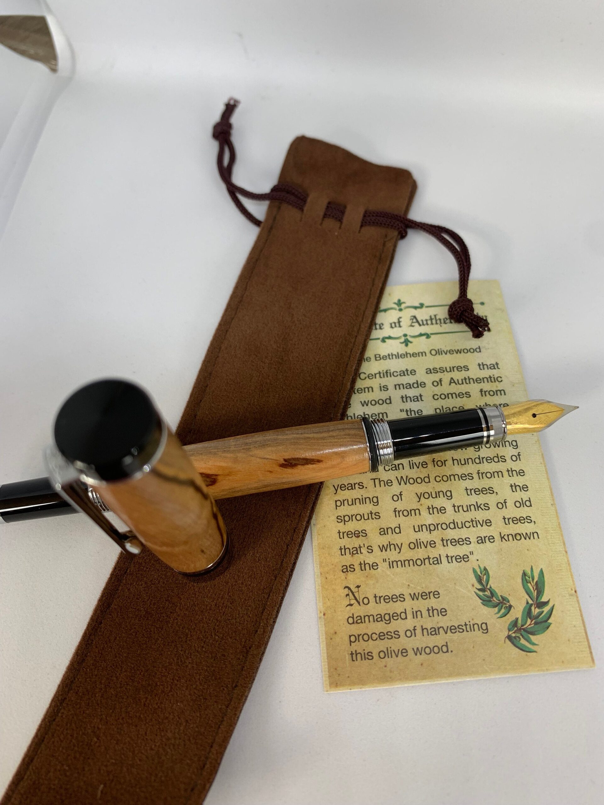 Beautifully made in Olive wood from Israel, lovely smooth finish and a pen for life.