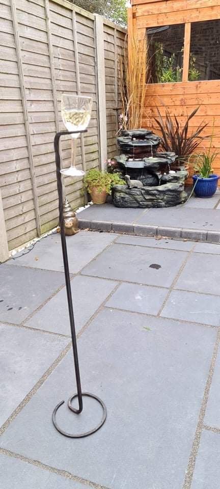 Self Standing Wine Glass Holder, Drink Holder, outdoor glass holder, BBQ ornament, drinks Butler.
